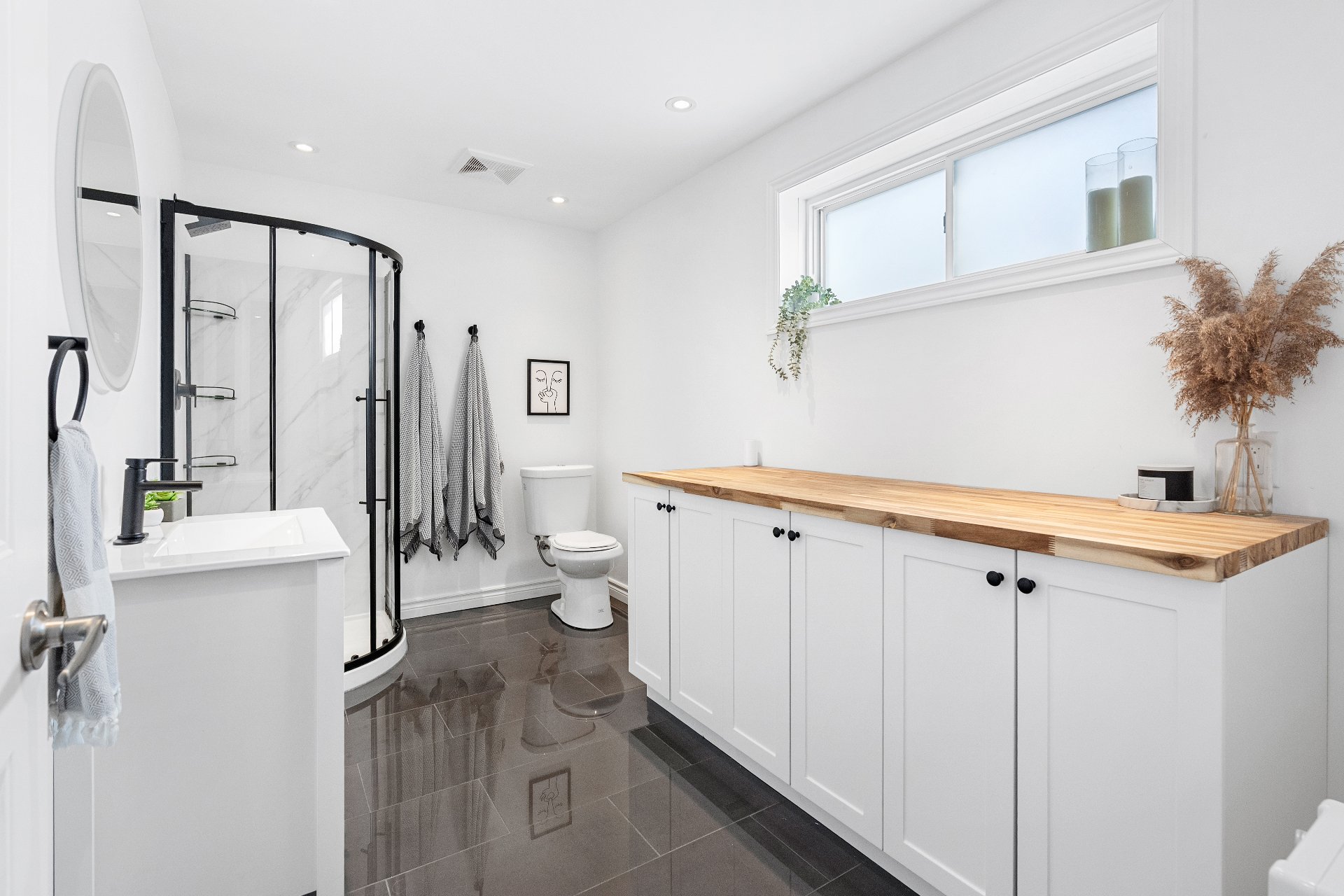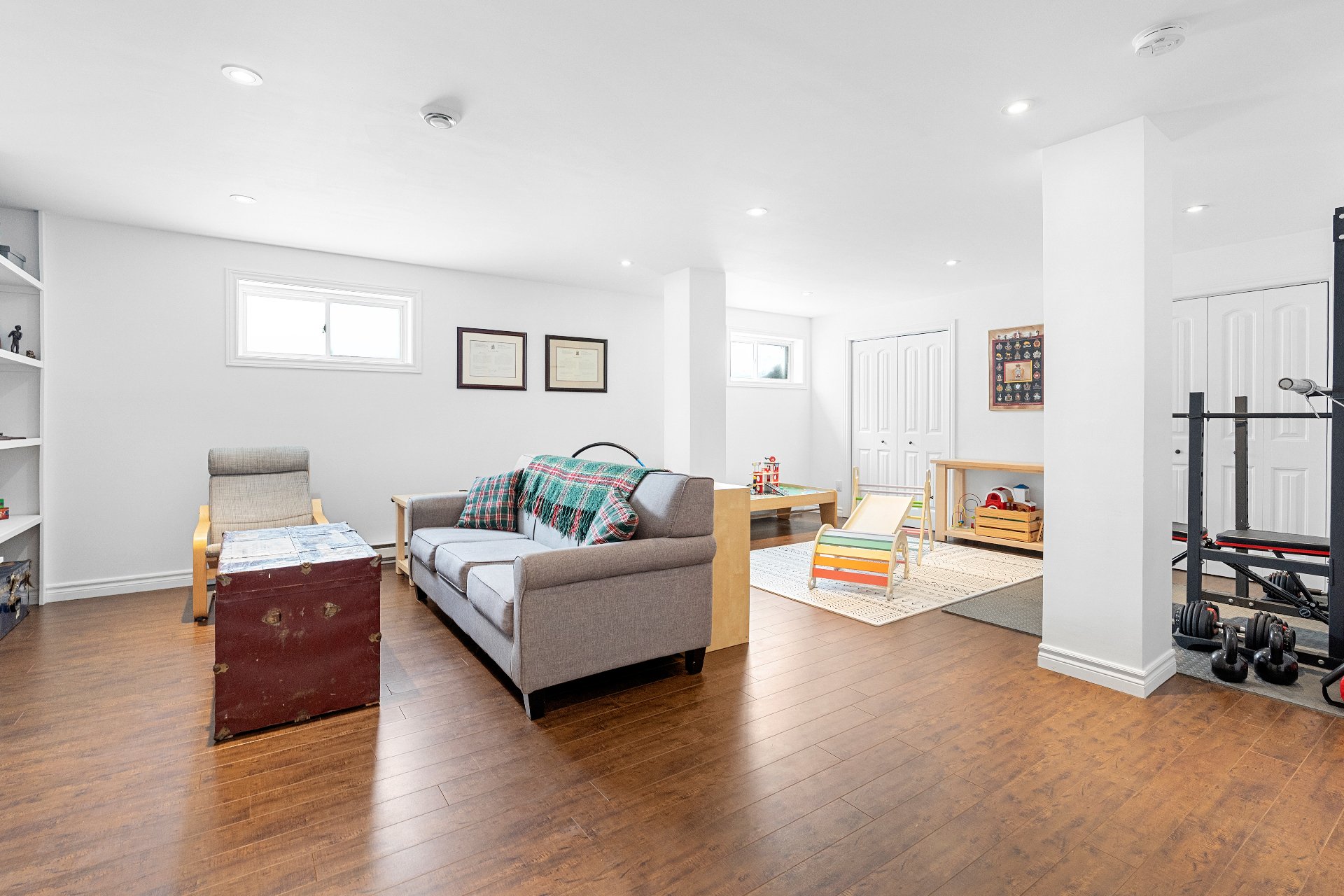 Le sous-sol dévoile une vaste salle familiale aux possibilités d'aménagement multiples, accompagnée d'une salle de bain complète entièrement rénovée, ajoutant une valeur appréciable à l'ensemble.