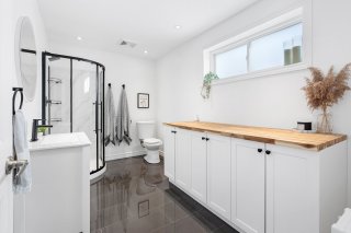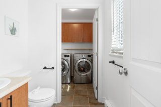 Une salle d'eau pratique, adjacente à la salle de lavage, vient optimiser l'organisation du rez-de-chaussée.