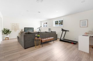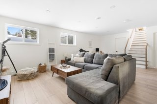 Le sous-sol entièrement aménagé propose une grande salle familiale, un espace bureau, deux chambres supplémentaires avec penderie, une salle de bain complète au style distinctif ainsi qu'un espace de rangement pratique.
