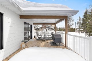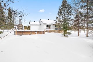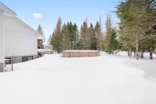 À l'extérieur, le terrain de coin est agrémenté d'arbres matures qui apportent charme et caractère à l'environnement. Une grande terrasse et une piscine hors terre chauffée viennent parfaire cet espace de vie extérieur.