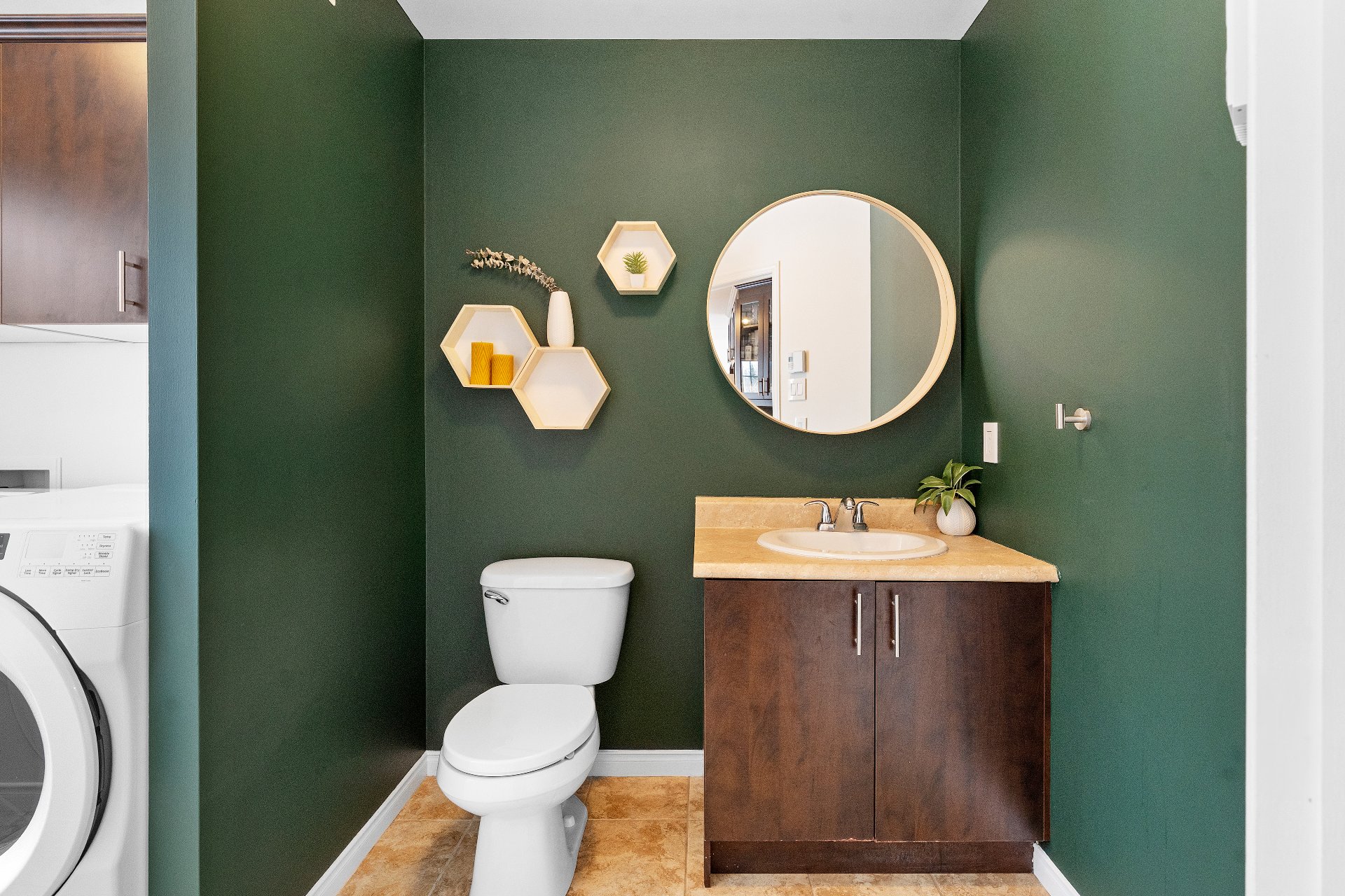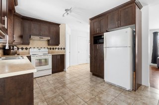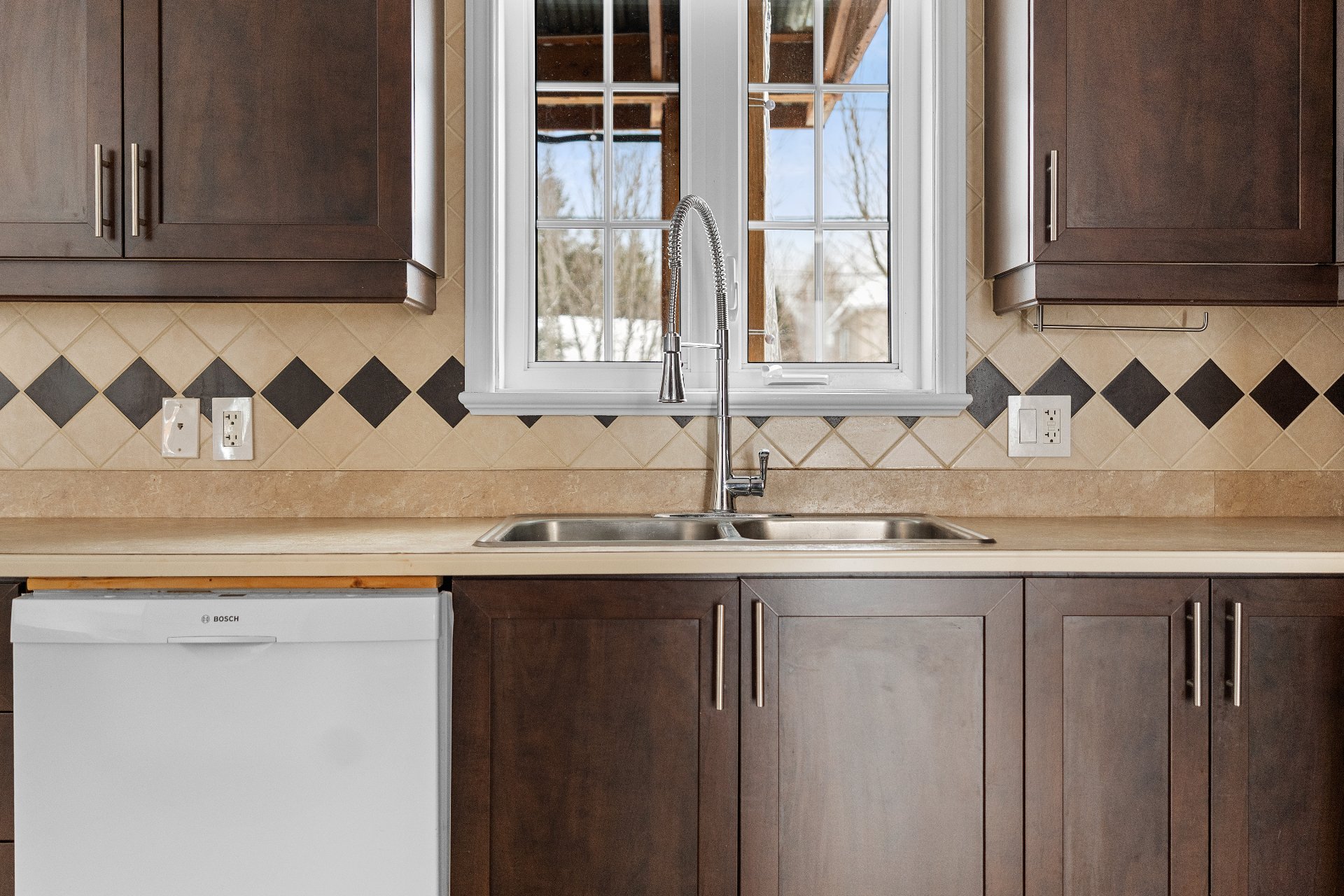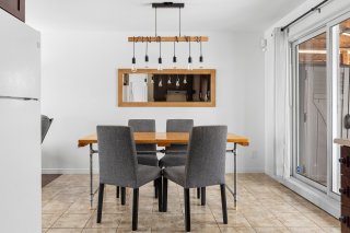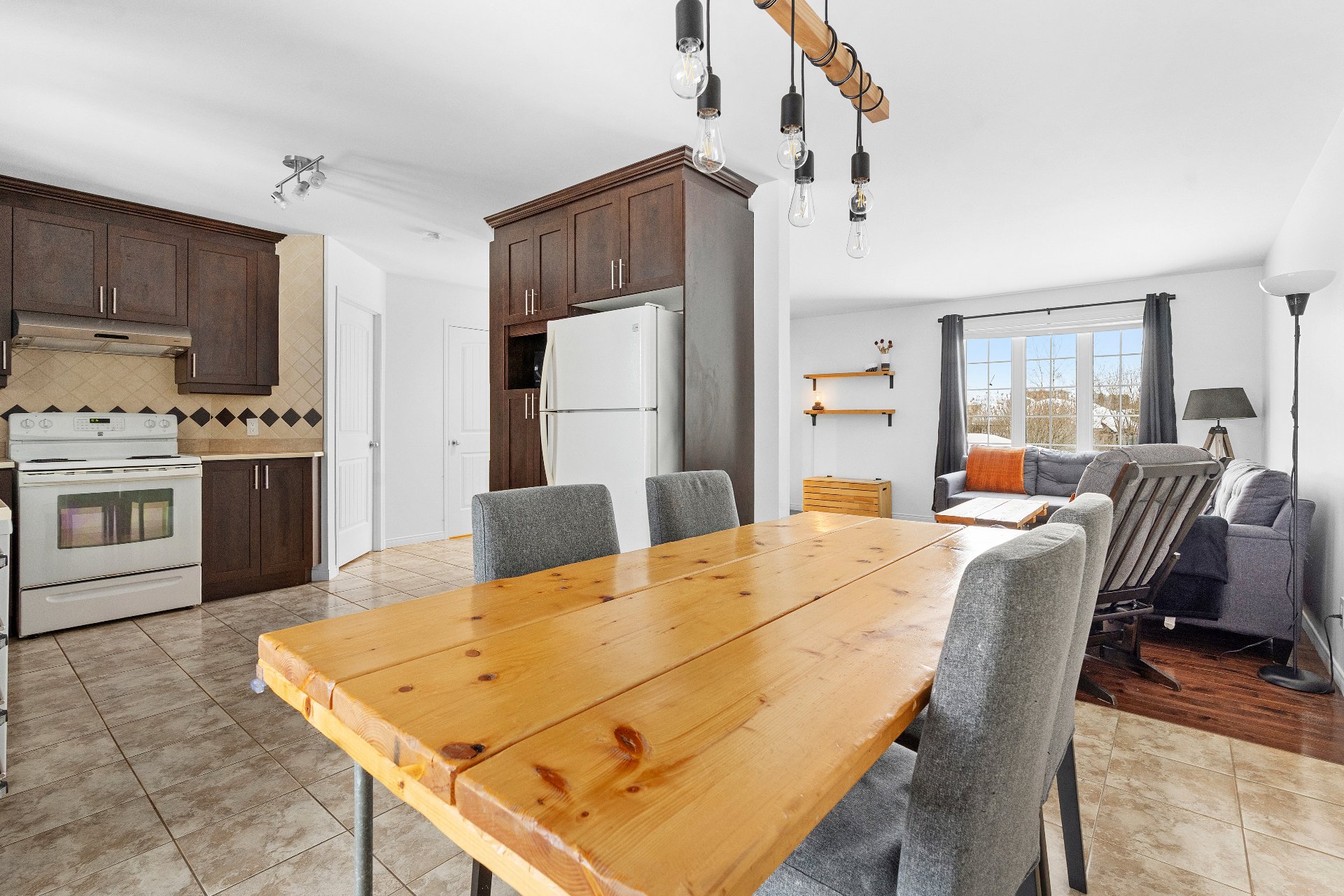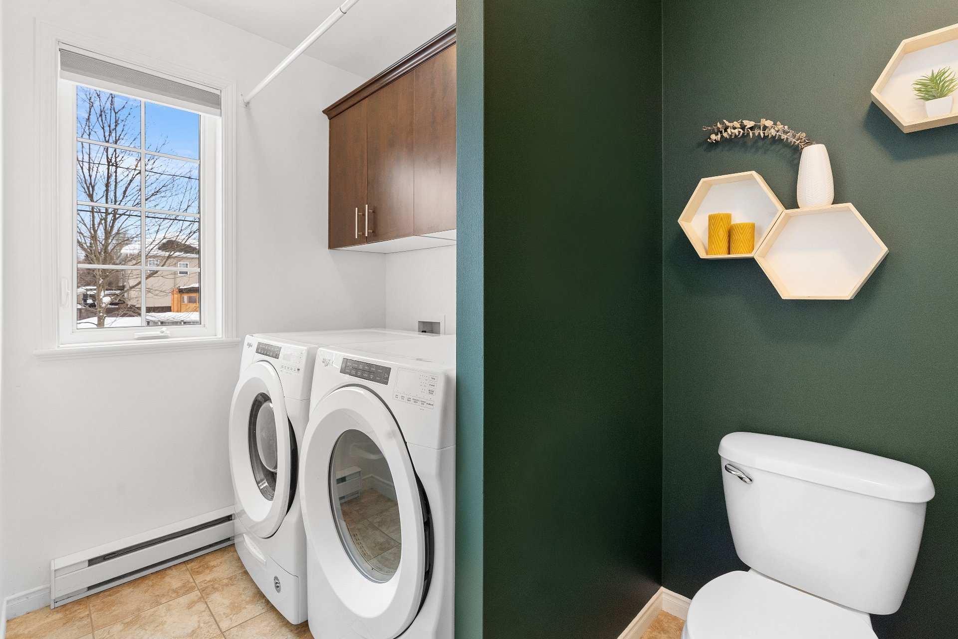 Dès l'entrée, le salon de bonnes dimensions accueille chaleureusement, tandis que la salle à manger baignée de lumière grâce à la porte patio s'ouvre harmonieusement sur une cuisine fonctionnelle offrant un vaste espace de rangement. Une salle d'eau avec installation laveuse-sécheuse complète le rez-de-chaussée avec praticité.