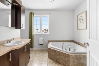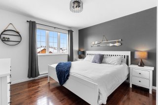 À l'étage, trois chambres à coucher de belles dimensions, dotées de rangements appréciables, assurent confort et fonctionnalité. Une salle de bain élégante avec bain et douche indépendante vient bonifier cet espace.