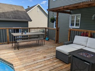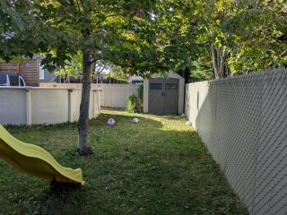 À l'extérieur, la cour arrière clôturée et entièrement aménagée, avec garage, piscine hors terre et superbe terrasse, invite à profiter pleinement de la belle saison. À proximité des services essentiels, cette propriété soigneusement entretenue est idéale pour une famille en quête d'espace, de tranquillité et de facilité au quotidien.