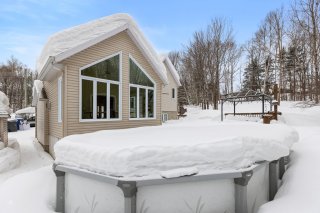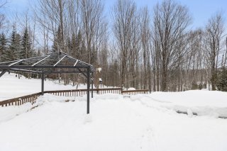 Inclus : Luminaires, cuisinière au gaz propane et hotte, cellier, piscine et accessoires (incluant la thermopompe et les escaliers), gazebo