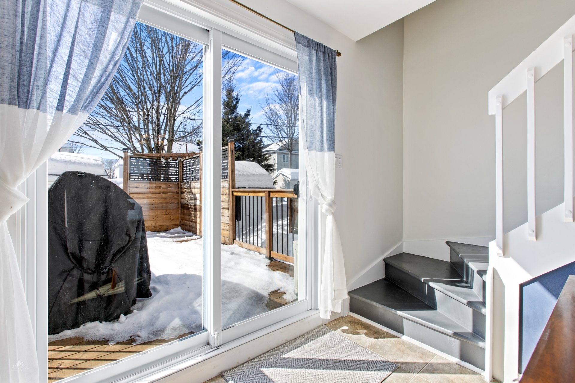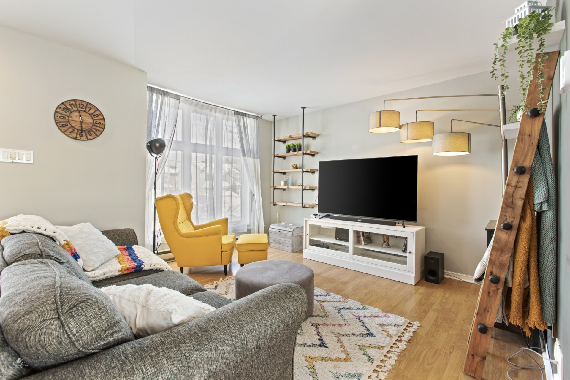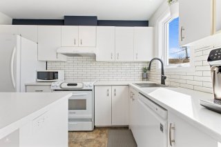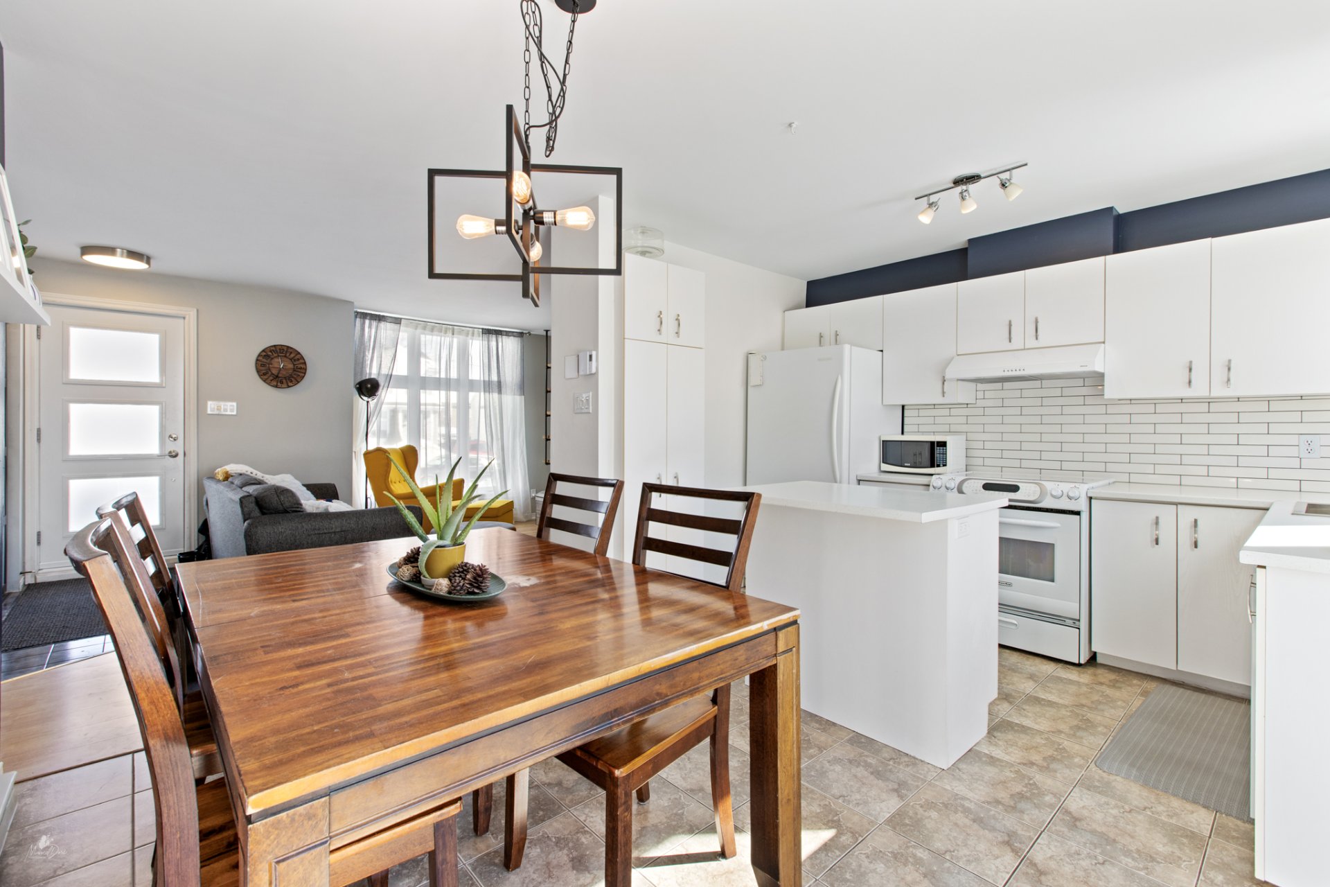 Inclus : Luminaires, habillage des fenêtres, balayeuse centrale et accessoires, lave-vaisselle.
