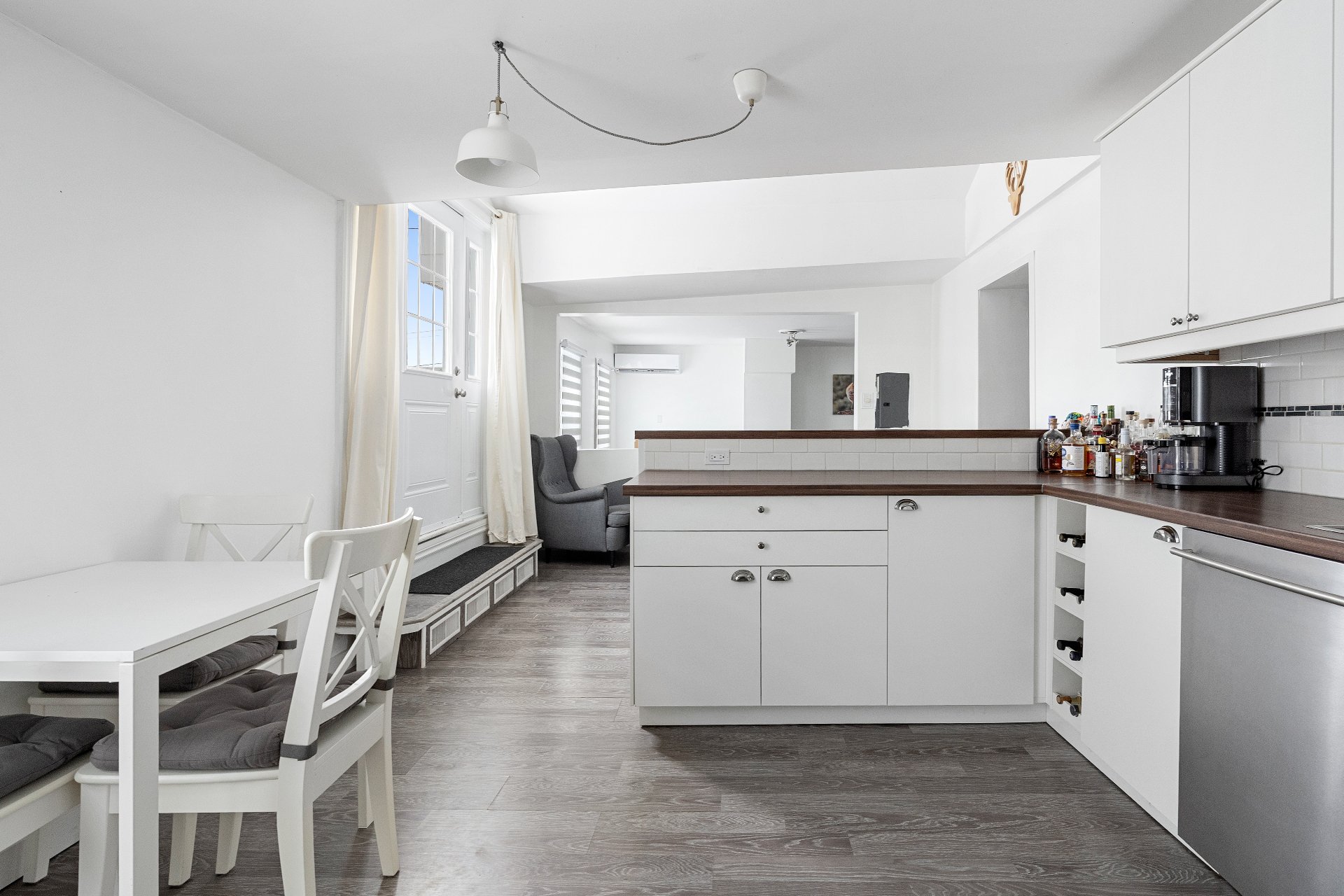 Anciennement un espace commercial, le rez-de-chaussée a été transformé avec soin en une aire résidentielle polyvalente, offrant aujourd'hui un potentiel d'aménagement incomparable.