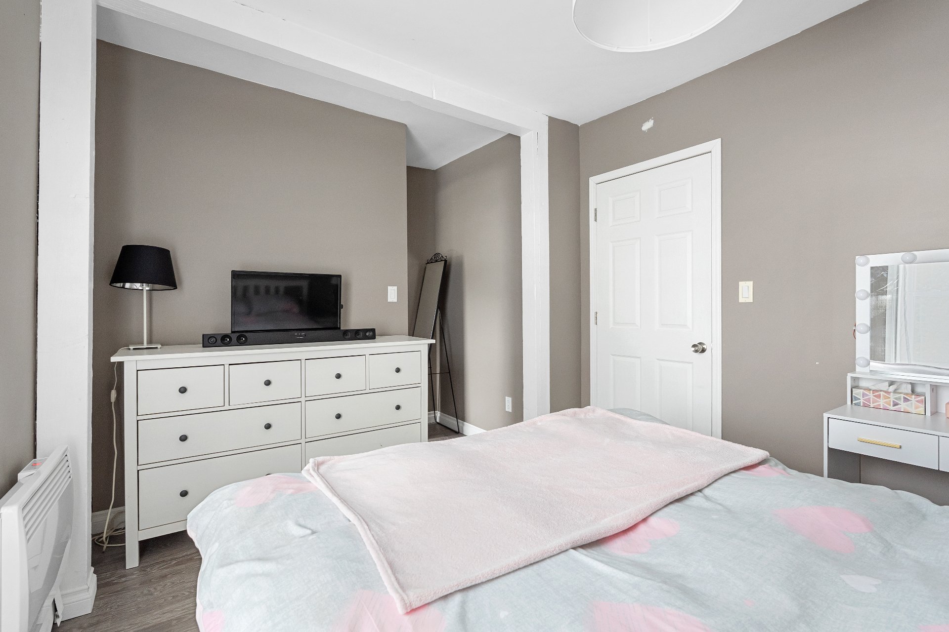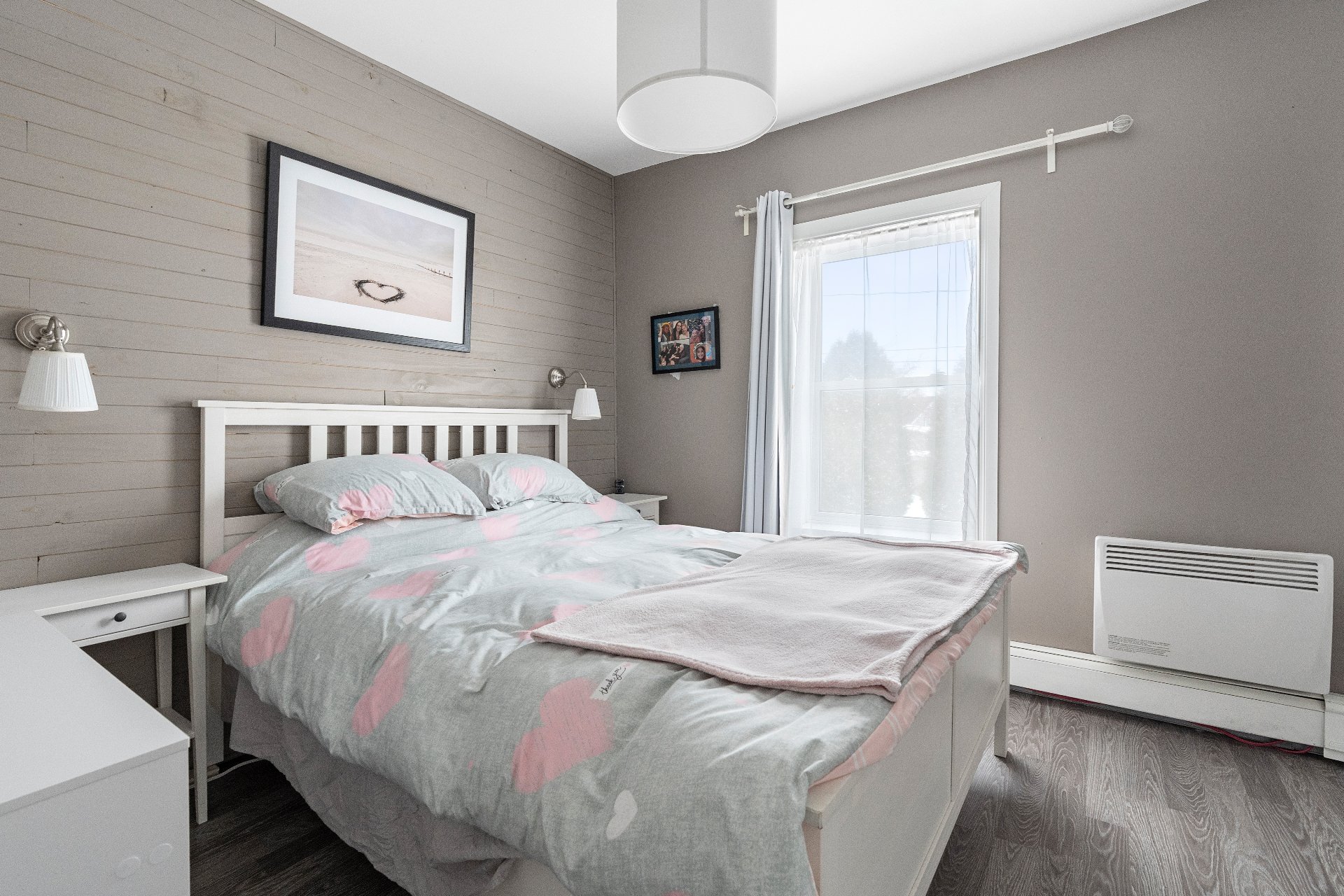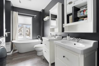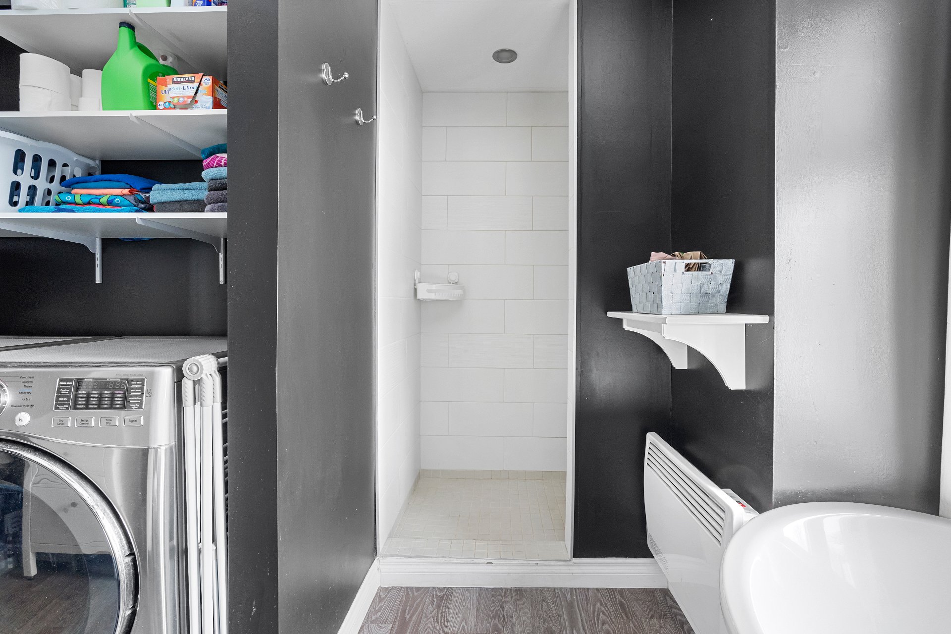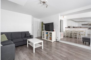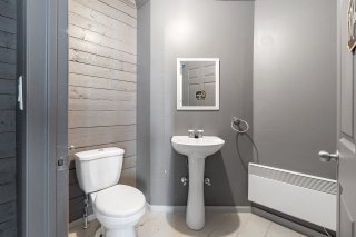 Vous y trouverez également deux chambres à coucher de belles dimensions, dont une avec penderie, ainsi qu'une salle de bain complète au design soigné, comprenant une douche indépendante, deux vanités et un espace laveuse-sécheuse intégré pour un maximum de fonctionnalité.