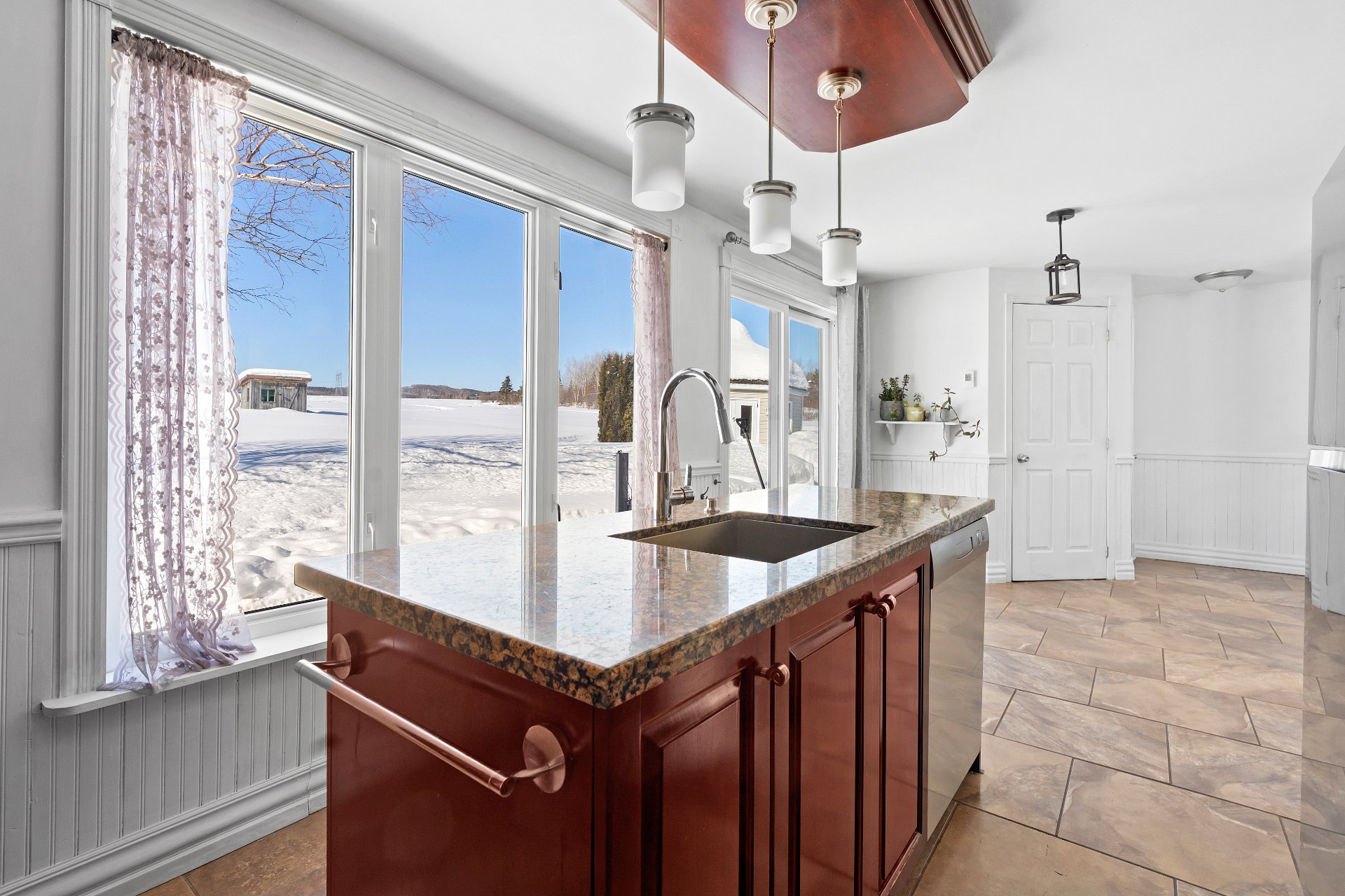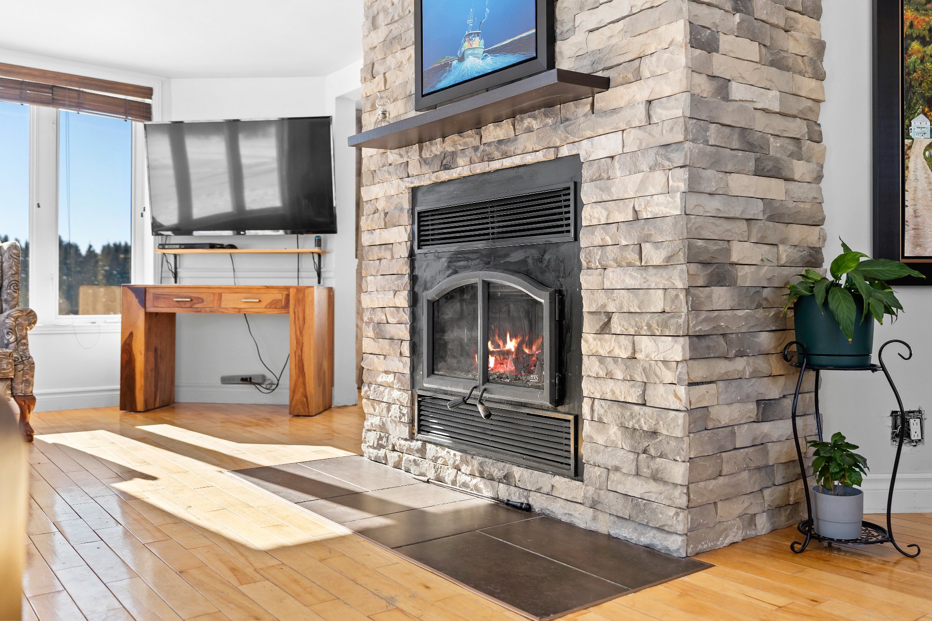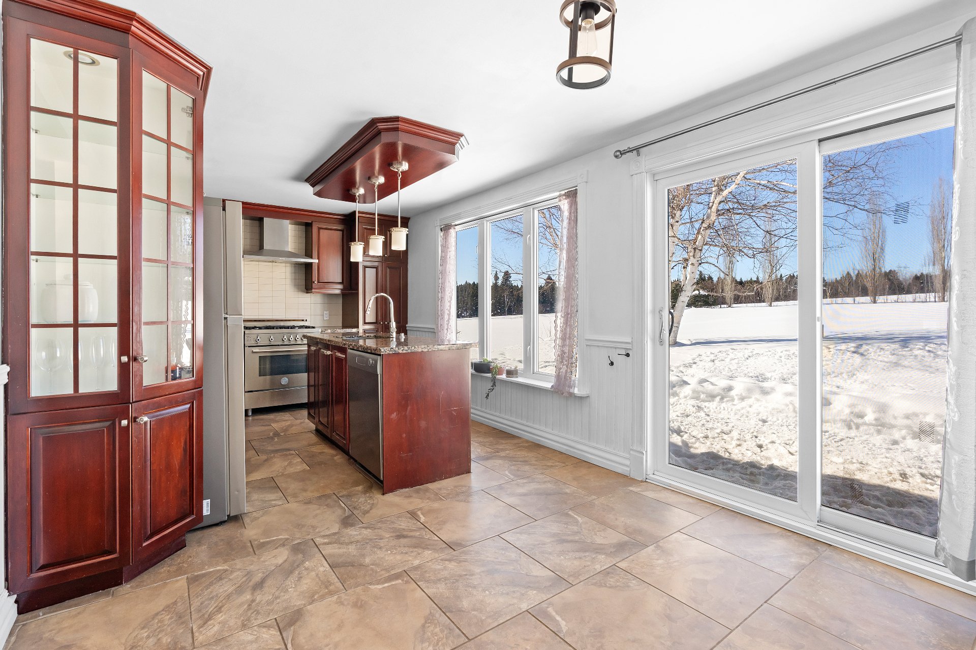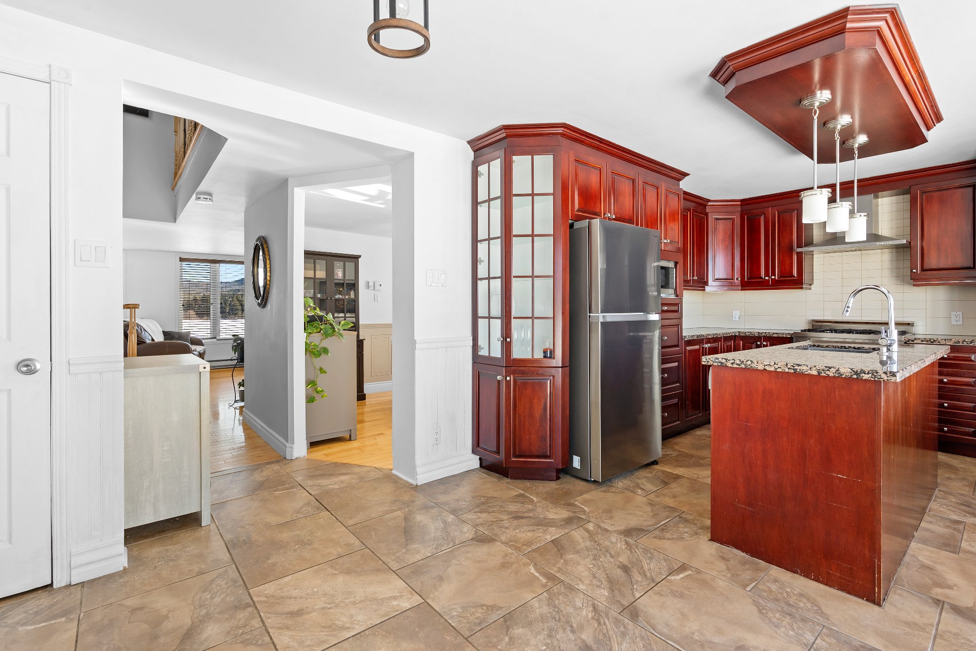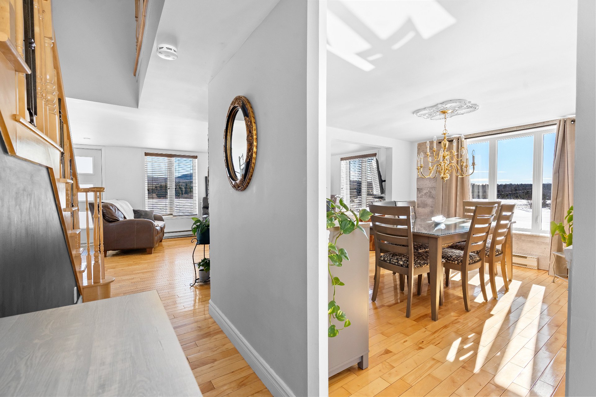 Cette propriété de style aire ouverte est baignée de lumière naturelle. Dès l'entrée, le salon vous accueille avec un magnifique foyer au bois dégageant confort et élégance. La salle à manger s'intègre harmonieusement à l'espace et mène à une grande cuisine aménagée de façon stratégique, offrant une abondance de rangement et un vaste plan de travail.