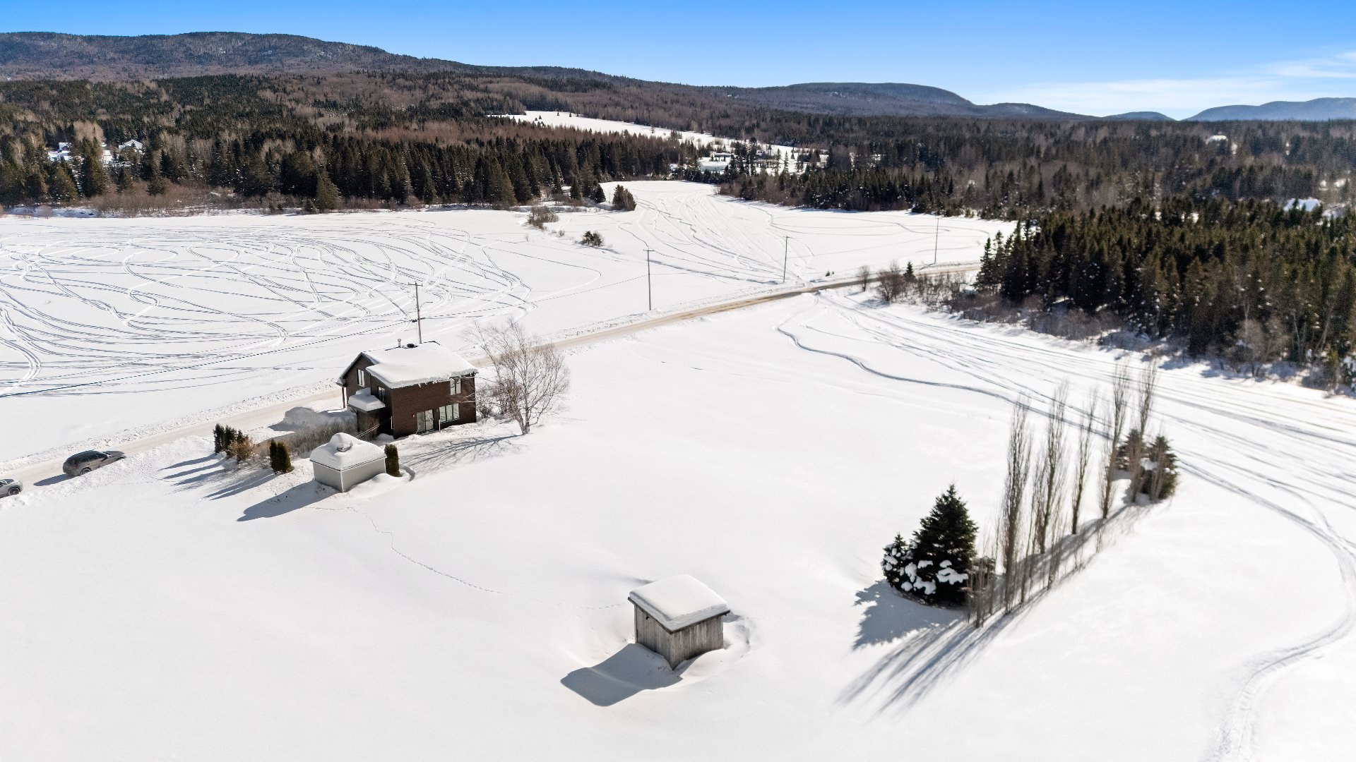 Inclus : Luminaires, stores, rideaux, pôles et tringles, moteur balayeuse central (non branché), cuisinière au gaz et lave-vaisselle, cabanon et poulailler.